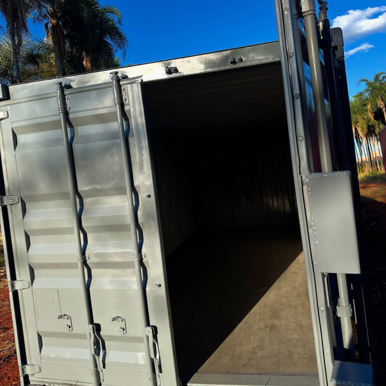 Nossos containers possuem estrutura reforçada, vedação contra intempéries e sistema de travamento de alta segurança, garantindo que seu estoque fique protegido contra furtos, chuva, poeira e outras condições adversas.